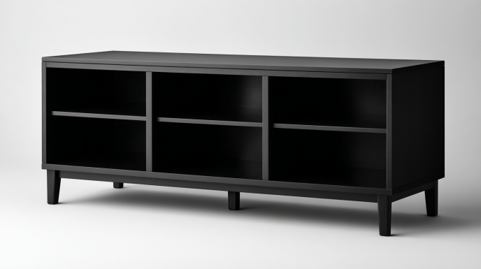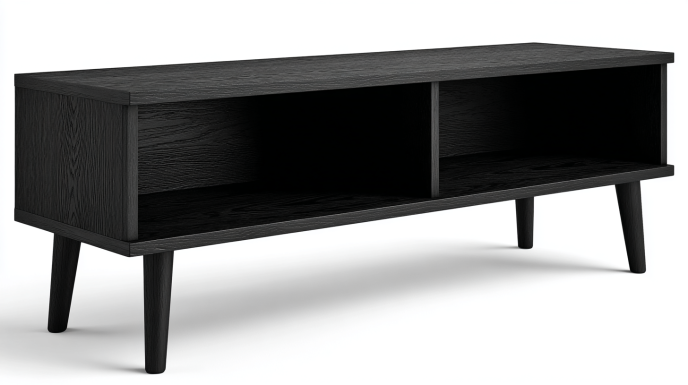 Compact without feeling cramped, this model is purpose-built for smaller rooms, bedrooms, and dorm setups where space efficiency is paramount. Featuring four open shelves, it organizes your media essentials neatly while maintaining the brand’s signature slim, rectangular form. The dark finish integrates seamlessly with a wide range of existing furniture, making this one of the most versatile picks in the lineup.