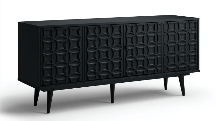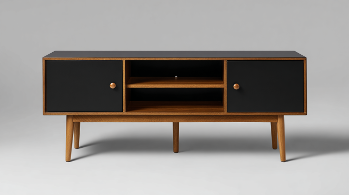 Color is never arbitrary in interior design, and black carries a weight of intention that few other tones can match. In the context of a TV stand, black functions on multiple levels simultaneously. Practically speaking, it conceals dust, minor surface scuffs, and the inevitable fingerprints that accumulate around high-traffic entertainment areas. Aesthetically, it grounds the room—creating a visual anchor point that draws the eye intentionally toward the screen and its surrounding accessories.