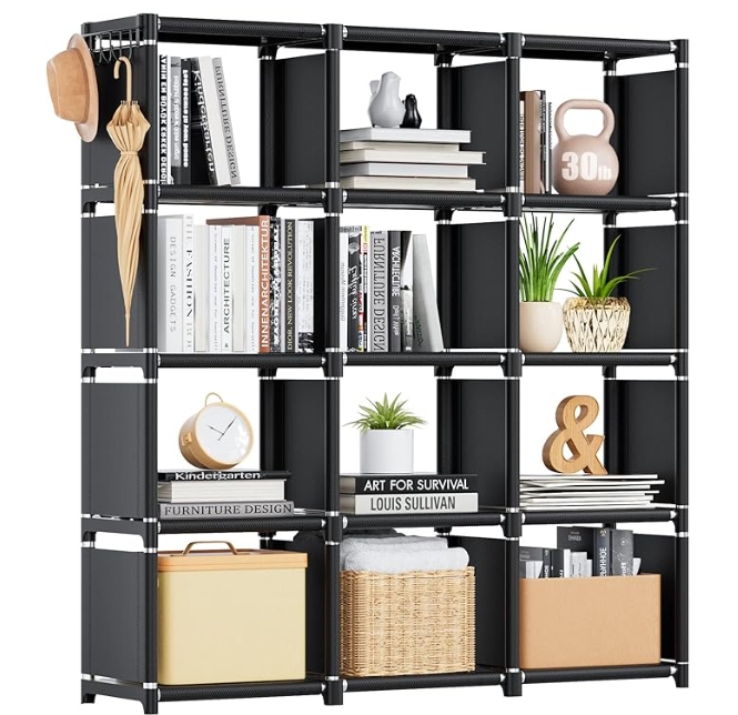 - Each cube size is 11.8×11.8×11.8 inch, 12 cube storage shelf with enough storage space for you to store books, toys, yarn, shoes, clothes, bags, purse and more everyday things you want to store, a ideal home storage solution for you