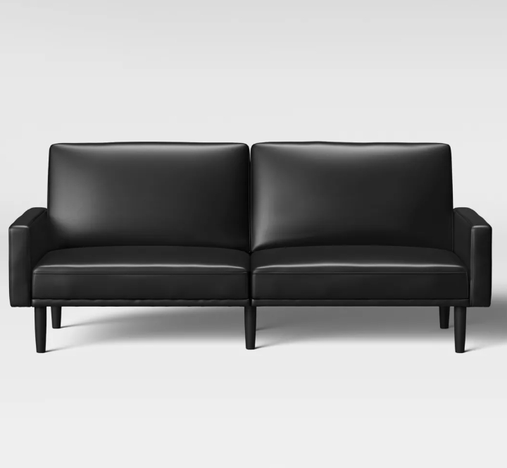Faux Leather Dorm Futon Sofa with Arms Black – Room Essentials™