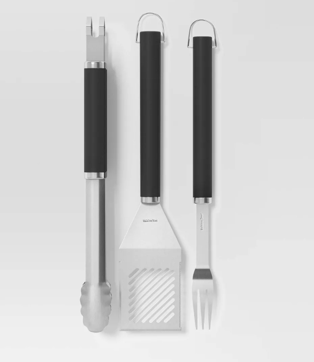 3pc Stainless Steel Grill Tool Set with Handles Light Silver – Room Essentials™