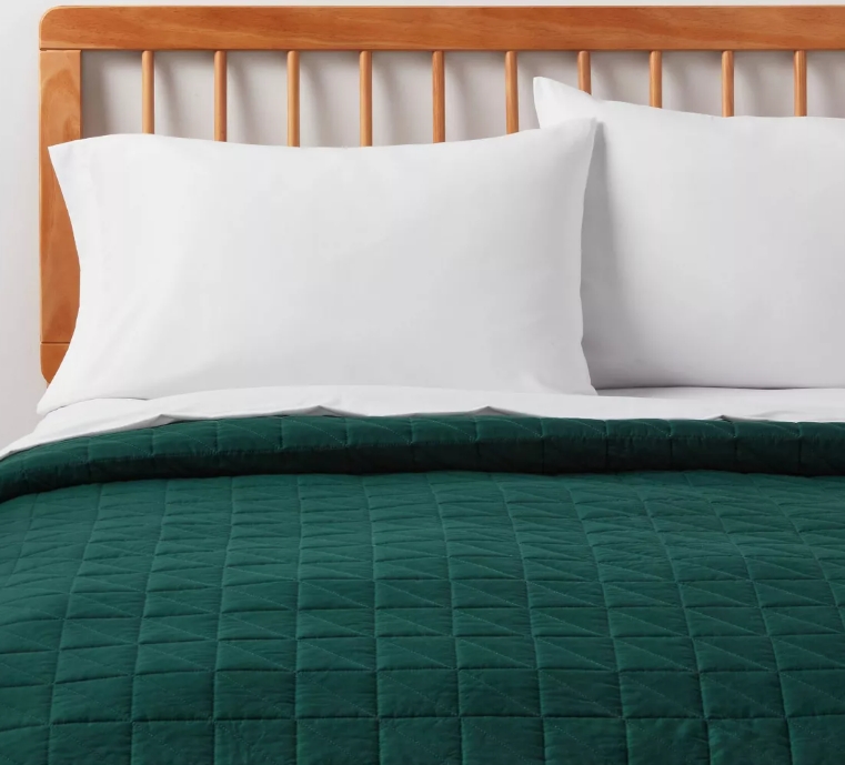 - Solid hue with a quilted design adds subtle contrast to your top of bed