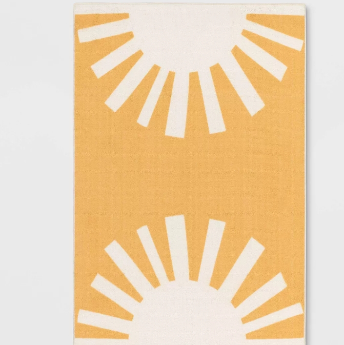 - Yellow area rug with sun print