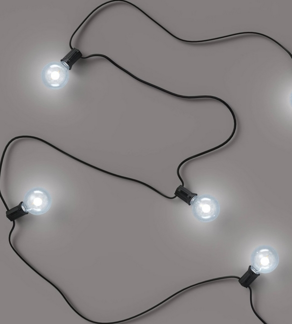 Room Essentials offers string lights with LED, incandescent and clear bulbs. LEDs are the most energy-efficient and long-lasting. Incandescent bulbs provide a classic warm glow. Clear bulbs disappear into the background when off.